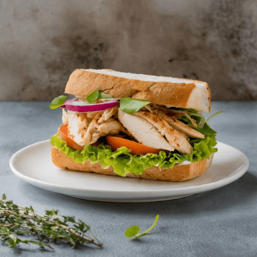Marinated in a balsamic vinaigrette served with lettuce, tomatoes, American cheese on house bread. All sandwiches served with a choice of French fries, coleslaw, potato salad or pasta salad