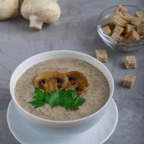 Served with grilled portobello and button, mushroom with a light sage and port wine sauce. Served with house salad